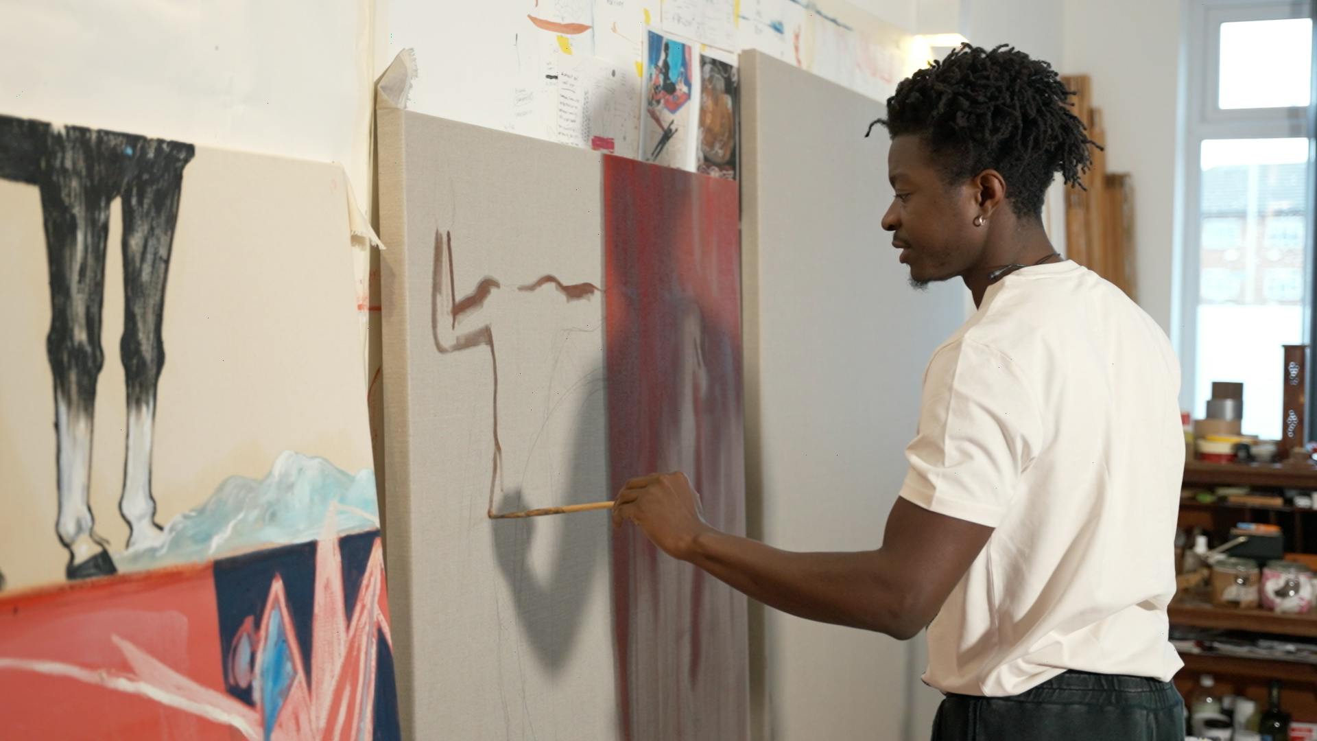 In the latest edition of the Djembe Series, he reveals he first “drew something properly” at the age of three. An angel with wings and muscles, following a dream in which he saw himself going to heaven. “I grew up in church, angels and people with wings seemed cool,” he says. In year four, attended a gifted and talented program and later, was sent to a private art school but didn’t like it because he was the youngest pupil. “Mum, there are just old people here. I don’t like it,” he recalls. Highly influenced by movement, the London native entertained the idea of becoming an animator or ninja as a child and even completed ninja training.