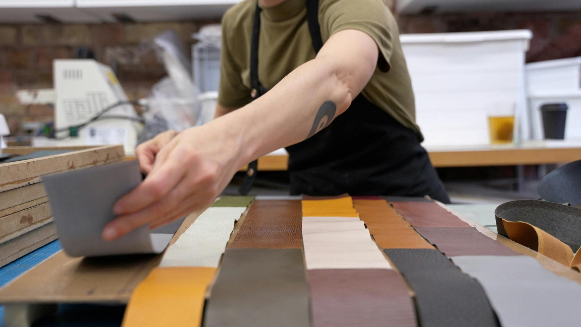 Highlights of the collaboration included using deadstock and leathers offcuts in the colours of their AW22 collection to create a unique patchwork briefcase that respects our design sensibilities with sustainability at its core.